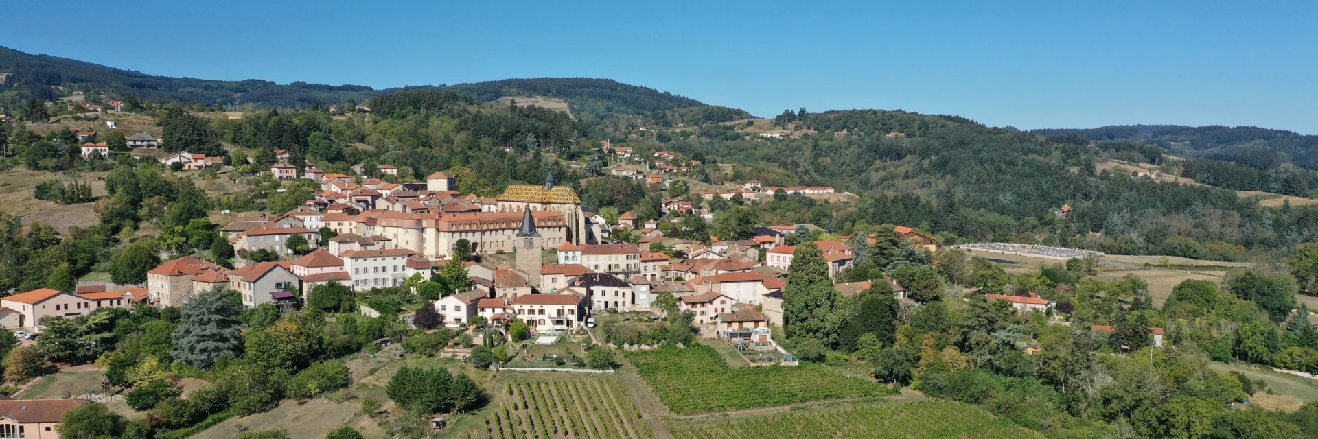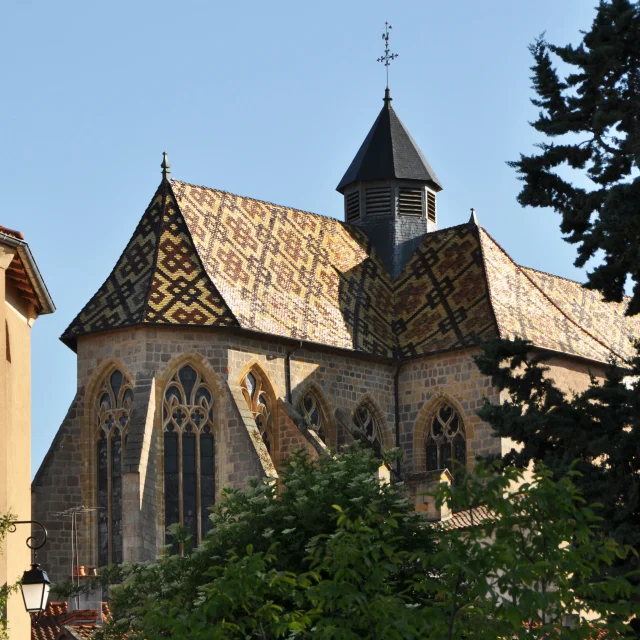 L’église d’Ambierle, de style gothique flamboyant, conserve de précieux vitraux du XVe siècle et abrite un chef-d’œuvre flamand : le retable de la Passion (1466). Elle s’inscrit dans l’ensemble architectural du prieuré, véritable cœur spirituel et historique du village. La cour claustrale, récemment restaurée, est ouverte à la visite depuis l’église ou la Maison de Pays.